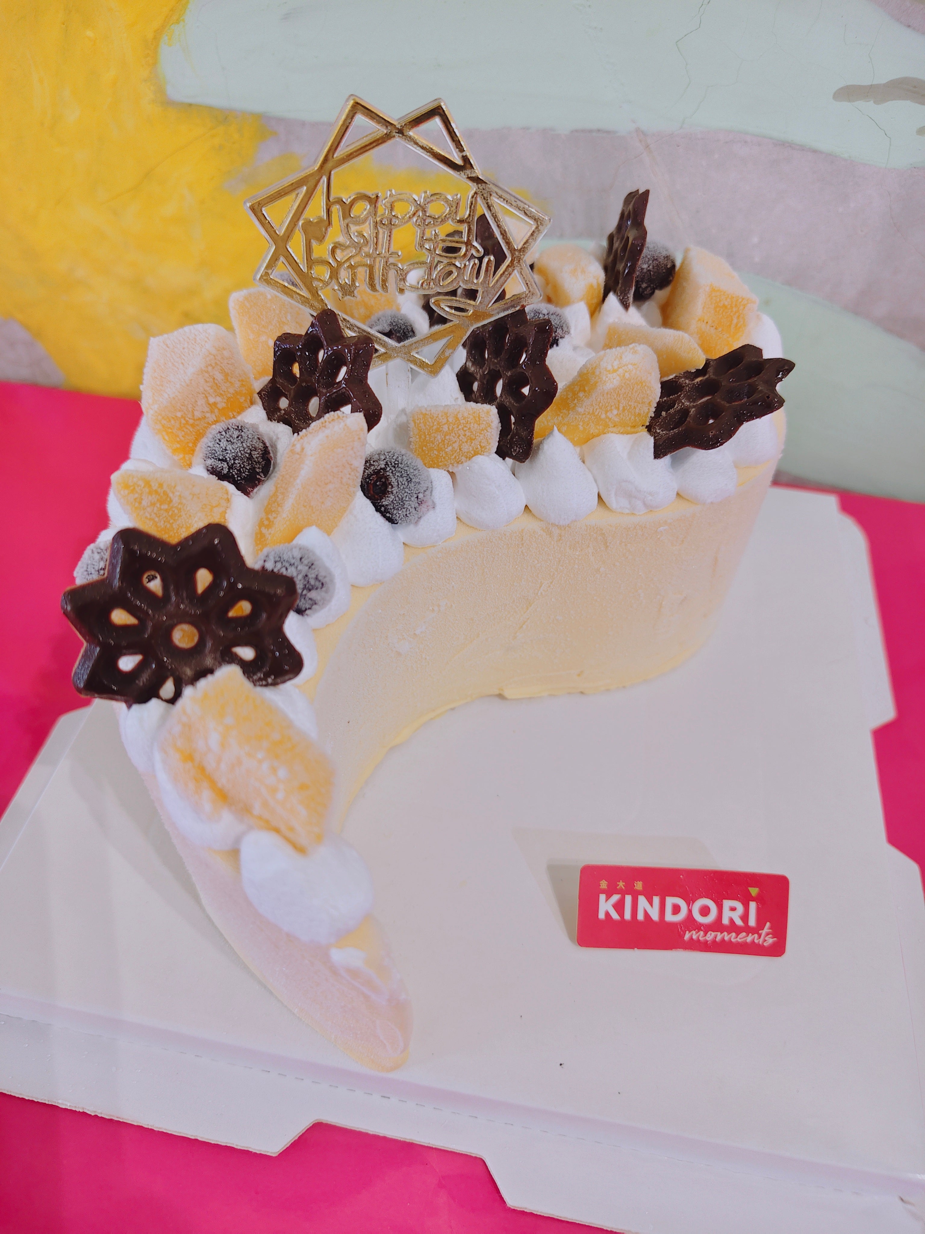 A refreshing tropical indulgence crafted for mango lovers. This smooth and creamy mango ice cream cake is shaped in an elegant crescent design, symbolizing sweetness and celebration. Topped with fluffy whipped cream, juicy mango bites, and delicate chocolate accents, every bite delivers a perfect balance of fruity freshness and rich indulgence.